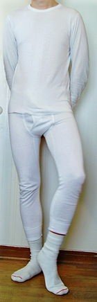 这种“外国秋裤”似乎和我国传统秋裤形制不同,我们常见的秋裤是较为蓬松而有束口的。那么这种束口秋裤外国有没有呢?也有,就是刚才提到的long underpants。