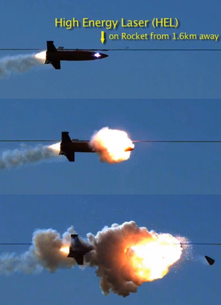 2013年5月,美国洛克希德·马丁公司宣布,他们研制的激光武器在1.5千米的距离上,成功摧毁了8枚处于自由飞行状态的小口径火箭弹。而在另外的实验中,他们的激光武器还击落了1.5千米外的无人机。这些实验表明,激光武器作为近距离防御武器已基本成熟。